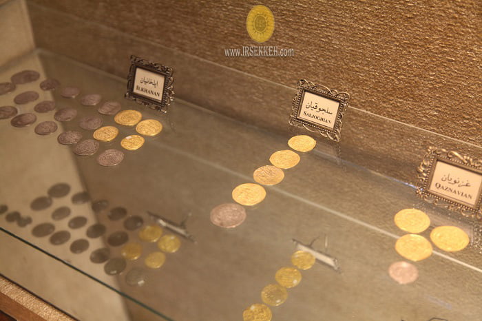 قسمتی که برای مجموعه داران از اهمیت بیشتری برخوردار است ضرابخانه آن می باشد. این ضرابخانه در زمان شاه عباس به کار ضرب سکه های طلا و نقره دولتی مشغول بود. در سال 1350 به هنگام ترمیم و بازسازی بنا، سکه ها و فلزاتی که در تولید سکه به کار می رفتند یافت شدند که حاکی از کاربرد این بنا دارند. در این بنا غرفه های مختلفی از سکه و اسکناس و لوازم آنتیک وجود دارد. سکه های دوره های مختلف از یونان باستان گرفته تا سامانیان و سلجوقیان و غزنویان و آل بویه و گورکانیان و تیموریان و افشار و قاجار و پهلوی در این مجموعه وجود دارد. در یک اتاق مخصوص نیز ماکت هایی ساخته شدند که هر بیننده ای با مشاهده آن کم و بیش با روند ضرب سکه در ضرابخانه های قدیمی آشنا می شود.