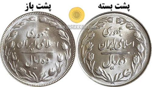 1- از واریته های فراوان در سکه های دوره جمهوری پشت باز و بسته می باشد که در سکه های 10 ریال نیکل به وفور دیده می شود.