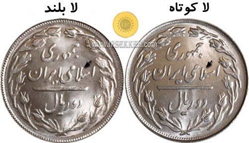 6- سکه های لا بلند و لا کوتاه جزو واریته های 2 ریال دوره جمهوری اسلامی می باشند. که تفاوتشان در تصویر مشهود است.