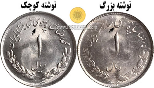 17- سکه 1 ریال 1332 دارای واریته به نام نوشته بزرگ می باشد که سورشارژ سکه 1 ریال 1331 می باشد.اگر دقت کنید در این سکه نوشته «محمدرضا شاه پهلوی» بزرگ تر از دیگر حالت آن می باشد.