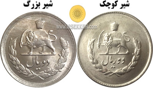 12- سکه های 2 ریال مصدقی محمد رضاشاه (1331-1336) دارای دو قالب ضرب در پشت سکه (از نظر شمایل ظاهری) هستند که آن سکه ای که اندازه شیر کوچک تر است را شیر کوچک می گویند.