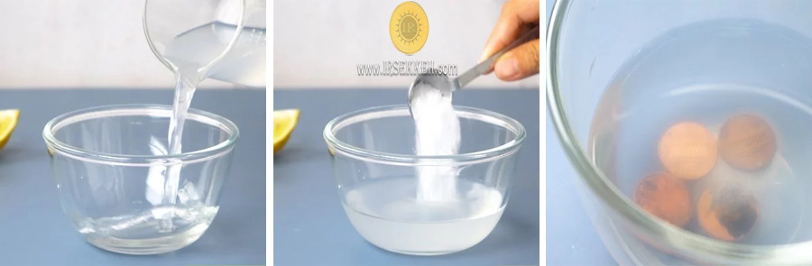 این روش یکی از پرکاربردترین روش ها برای تمیز کردن سکه می باشد. اگر سکه کثیفی کم و خفیفی دارد، محلولی از جوش شیرین با آب (لزوما مقطر) تهیه کنید. سکه را به مدت 2 الی 4 دقیقه داخل آن قرار دهید و سپس سکه را خارج کرده و با آب بشویید.