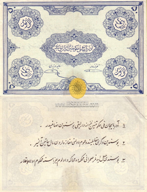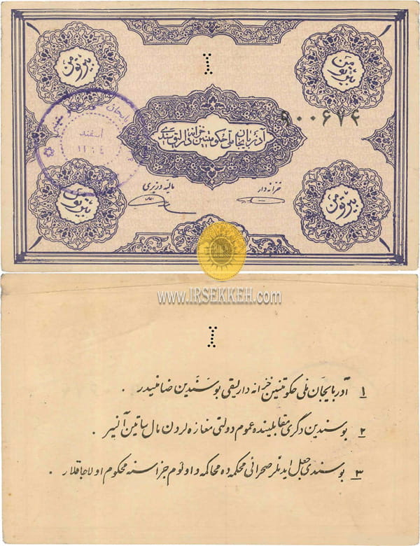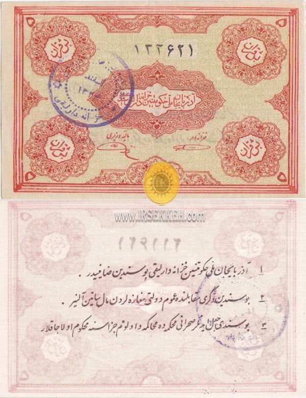 با خاتمه جنگ جهانی دوم و خروج نیروهای انگلیس از ایران برخلاف معاهده تهران نیروهای شوروی به دستور استالین در خاک ایران ماند. ارتش شوروی نیروهای خودش را در قالب فرقه دموکرات آذربایجان ادغام و ساعت آذربایجان را به وقت مسکو تغییر داد. عکس های لنین و استالین در جای جای شهر آویزان شدند.و حکومت خودمختار آذربایجان به ریاست سید جعفر پیشه وری تشکیل شد. این حکومت خودمختار به طور بی سابقه بدون حساب و کتاب و دارا بودن سیستم مالی اقدام به چاپ اسکناس کرد.اسکناس های بش قران (5 ریال)، بیر تومن (یک تومان)، ایکی تومن (دو تومان)، بش تومن (پنج تومان)، اون تومن (ده تومان)، اللی تومن (پنجاه تومان) با نوشته های ترکی در پشت اسکناس بدون رعایت ملزومات امنیتی اسکناس نظیر نخ و فیلیگران چاپ شدند.